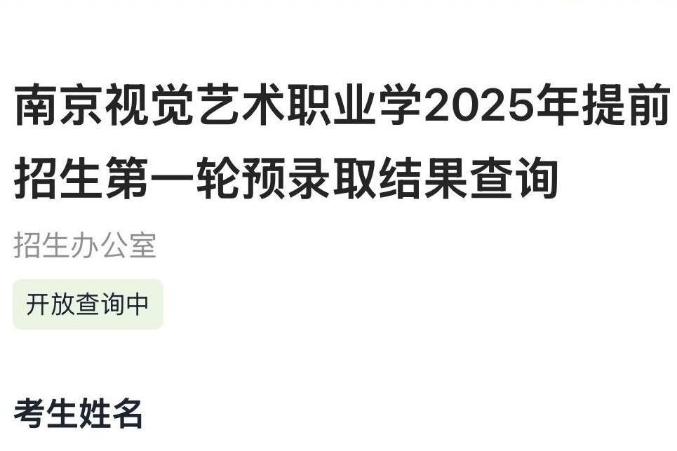 南京視覺藝術職業(yè)學院2025年提前招生第一輪預錄取查詢